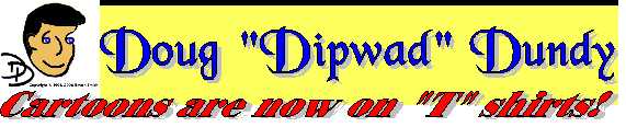 What's New on Dipwad Dundy's website you ask ? Why it's the new page that tells the origin of Doug "Dipwad" Dundy of course. And now a brand new Poem posted on Author's Den. Check it out. Something else that's new is that I have given all of these cartoons a new face-lift. I have fixed them up for commercial use and we are now putting them on "T" shirts, mouse pads, and tote bags using high quality heat transfers. |